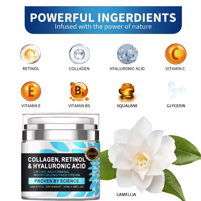 Съставката Retinol (витамин A) стимулира обновяването на кожните клетки, увеличава производството на колаген и помага за намаляване на видимостта на фини линии и бръчки.