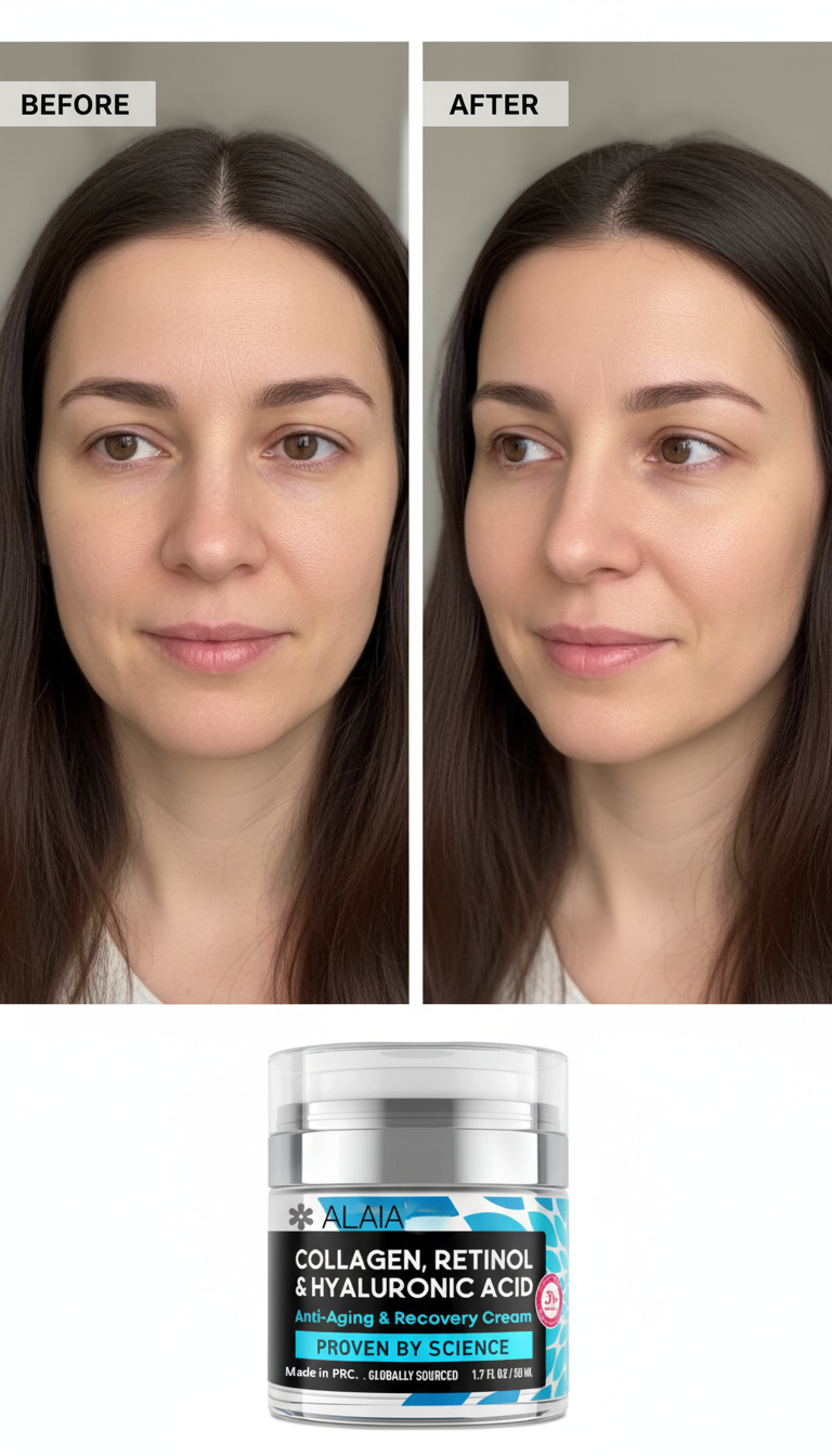 Намалява дълбоки бръчки и фини линии – ускорява клетъчния обмен 8–10 пъти и стимулира фибробластите да произвеждат нов колаген тип I и III (до +80% след 6–12 месеца постоянна употреба).